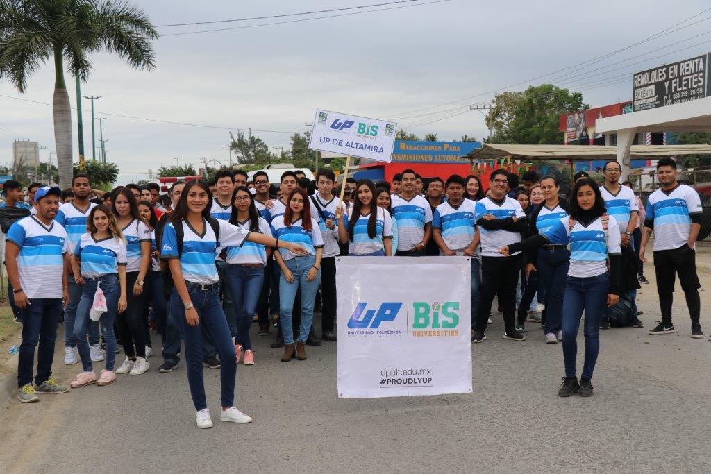 La delegación de la Universidad Politécnica, estuvo integrada por alumnos, personal docente y administrativo, quienes de manera entusiasta desfilaron por las principales calles del municipio y presentaron una coreografía de animación ante las autoridades que se dieron cita en el evento, encabezadas por la Sra. Alma Laura Amparán Cruz, Presidenta Municipal de Altamira.
