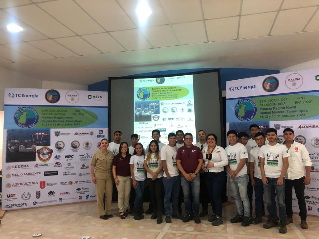 Petrolera”, a cargo del Dr. Adrián Vázquez Vázquez. Los días 12 y 13 de octubre el simulacro constó de dos partes, el ejercicio de gabinete y el de campo, en las actividades de gabinete la Universidad fue representada por el Ing. Enrique Esteban Espinosa Sosa y en el área de playa estuvo a cargo de la maestra Josefina García Navarro, quien fungió como Coordinadora de Voluntarios y participó con los alumnos en las actividades del centro de respuesta terrestre en playa. Dentro de estas tareas se logró iniciar el adiestramiento sobre control de derrames de hidrocarburos a 20 alumnos de Ingeniería en Energía por parte de la empresa NRC Republic con la demostración de equipos de recolección y contención de hidrocarburos en la línea de costa de la playa de Cd. Madero, estos quehaceres forman parte de un curso de capacitación que se gestionó con la empresa NRC y será impartido a alumnos de la Universidad a principios de noviembre, con el cual podrán obtener una constancia de competencias labores DC-3.También los estudiantes recibieron una introducción del curso: Fauna Empetrolada por parte de la CONANP en el área de playa, dicho curso tendrá continuación el próximo mes en las instalaciones de la Universidad en el XII Evento de Sustentabilidad Ambiental.